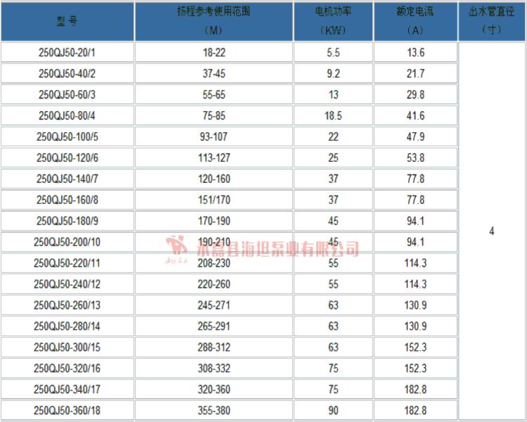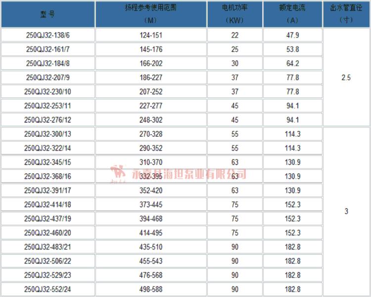 【QJ型井用潛水泵(深井泵)】性能參數(shù):